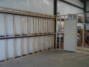 If required, the interior of a pre-engineered building can be framed and finished much like a traditional building. Interior rooms and partitioned areas are framed with either wood or steel studs. The final expenses for the interior build-out will be dictated by square footage and the level of finish work.