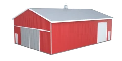 A 30×40 metal barn building is an ideal storage solution for farm machinery, equipment, hay, or livestock. Prefab barns are durable and long-lasting and offer 1,200 square feet of column-free storage space. Adjust the barn height and configure end wall and sidewall doors to meet your specific storage needs.